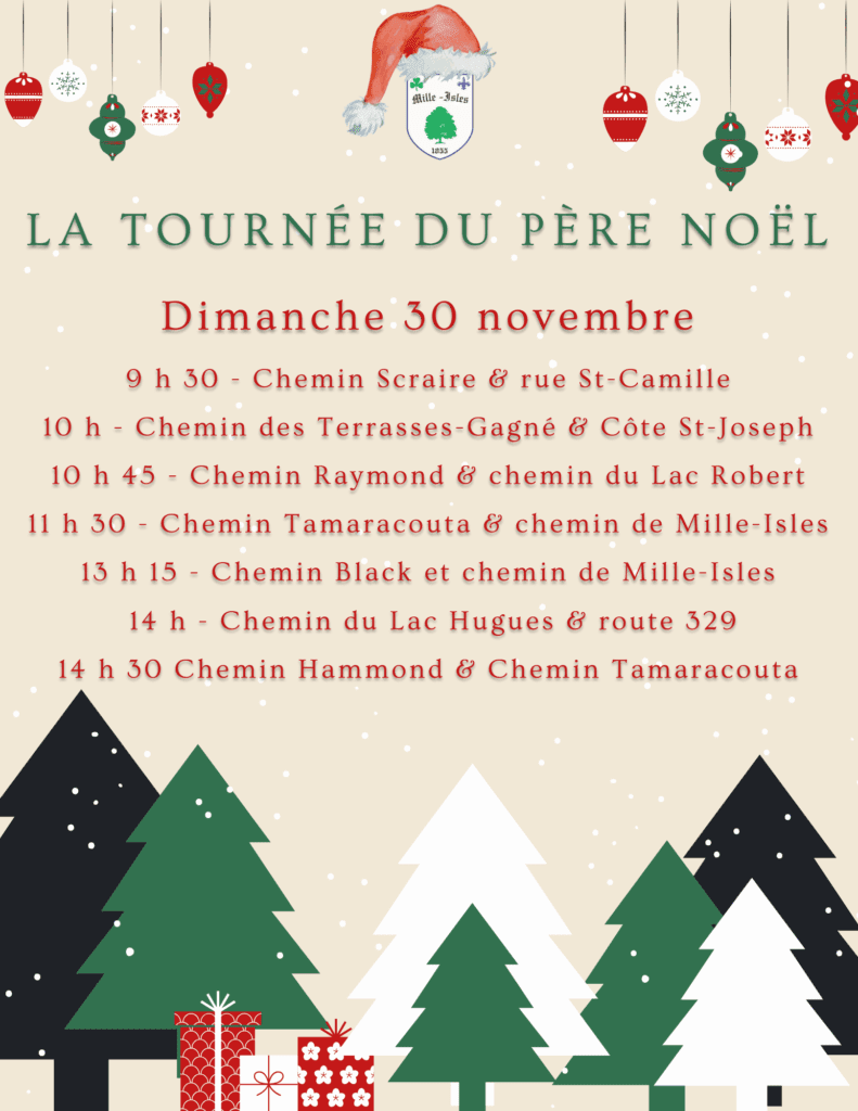 Les séances ordinaires du conseil municipal ont lieu les mercredis à l’hôtel de ville situé au 1262, chemin Mille-Isles et débutent à 19 h, à moins d’avis contraire.